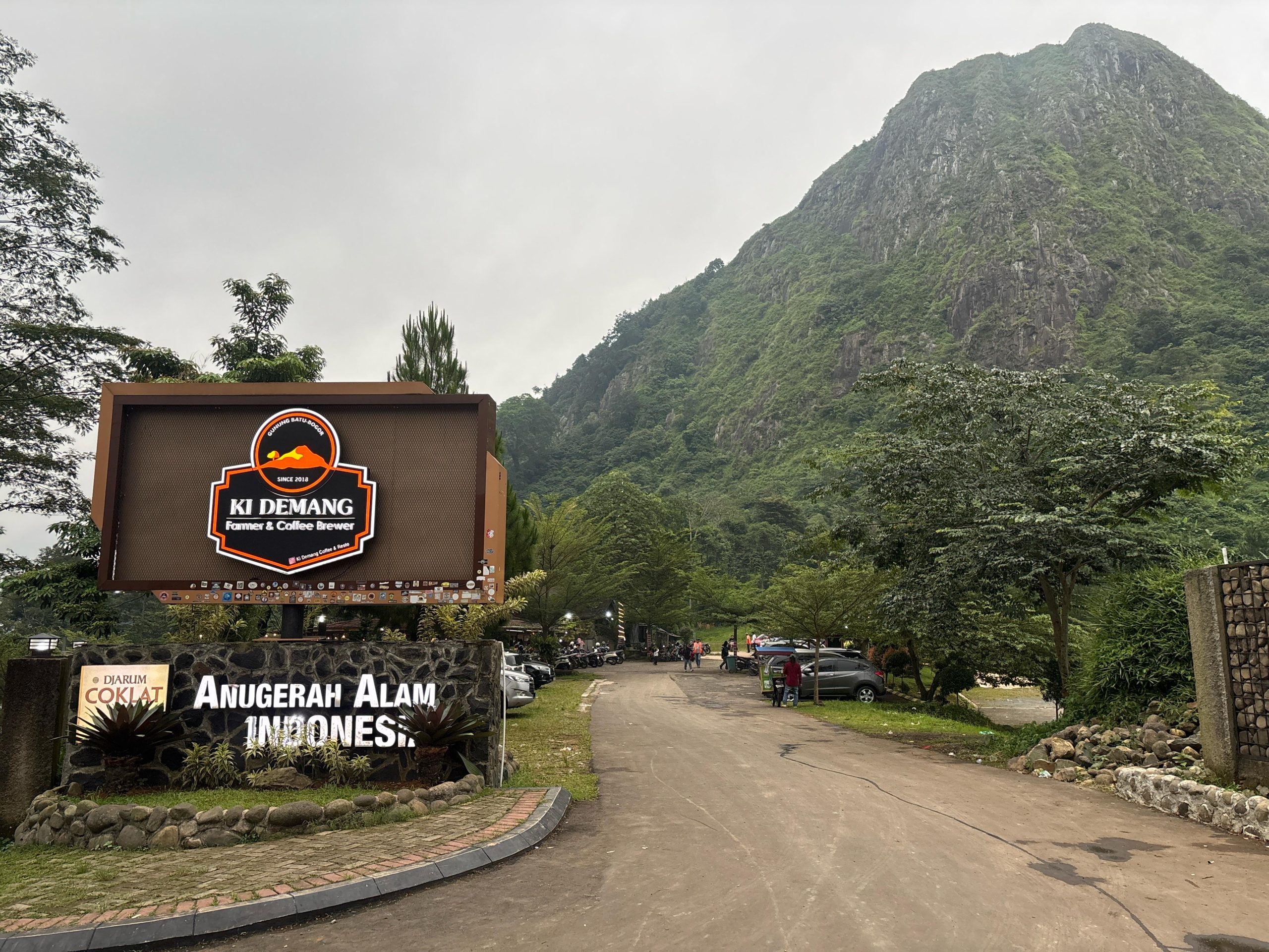 Setelah perjalanan lebih dari satu jam, mereka akhirnya tiba di Ki Demang Farmer and Coffee Brewer. Suasana hangat dan desain kafe yang alami langsung menyambut kedatangan mereka. Terletak di bawah bukit Gunung Batu, Ki Demang Farmer and Coffee Brewer dikenal dengan konsep alam terbuka dan view pegunungan yang menyejukkan mata.