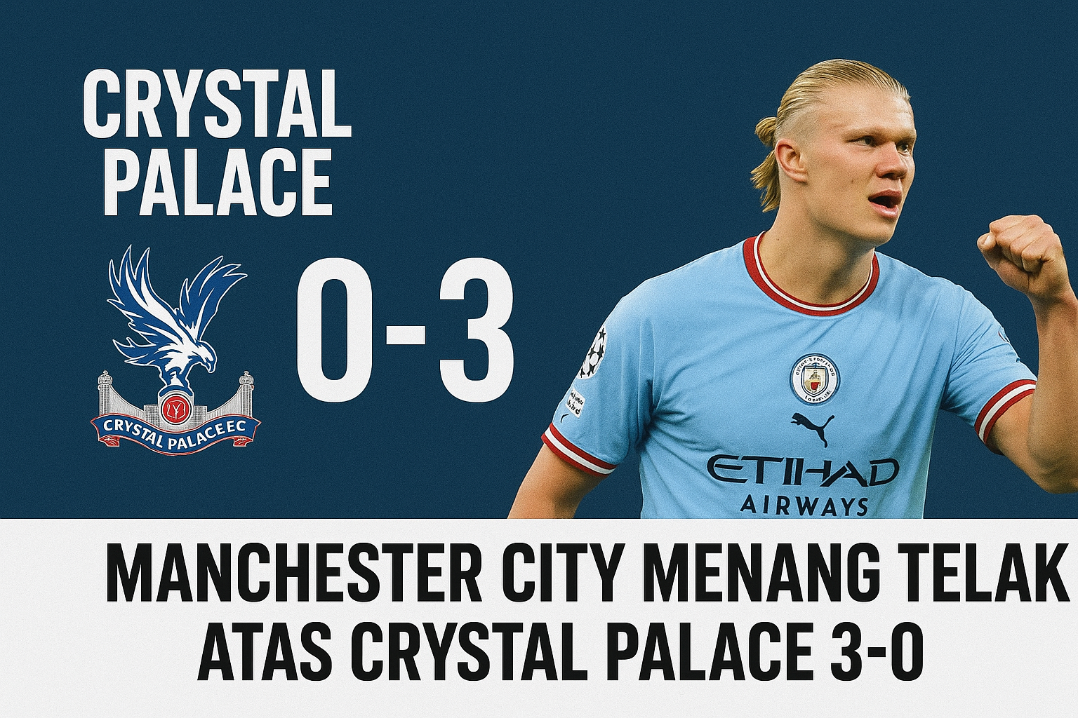 Hasil ini menjaga posisi Manchester City tetap bersaing di papan atas klasemen Liga Inggris, sementara Crystal Palace harus menerima kekalahan di hadapan pendukungnya sendiri.
